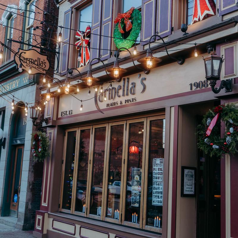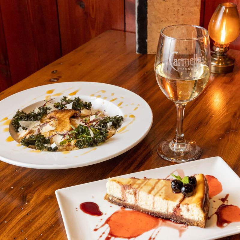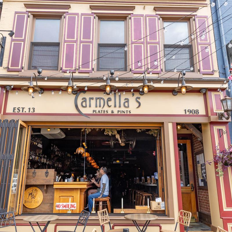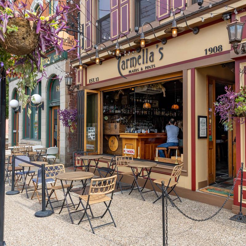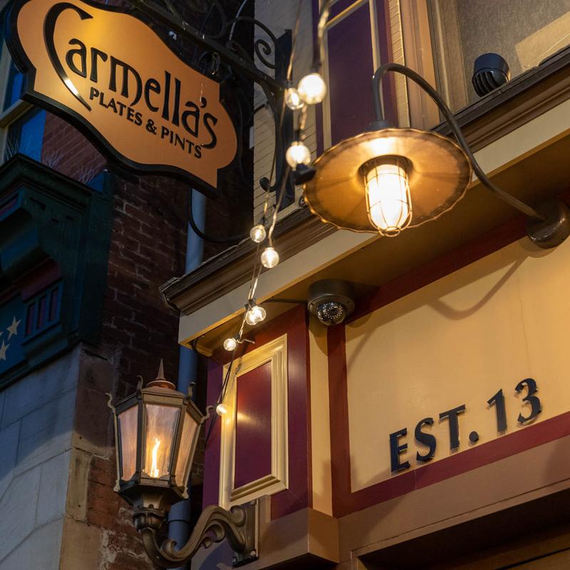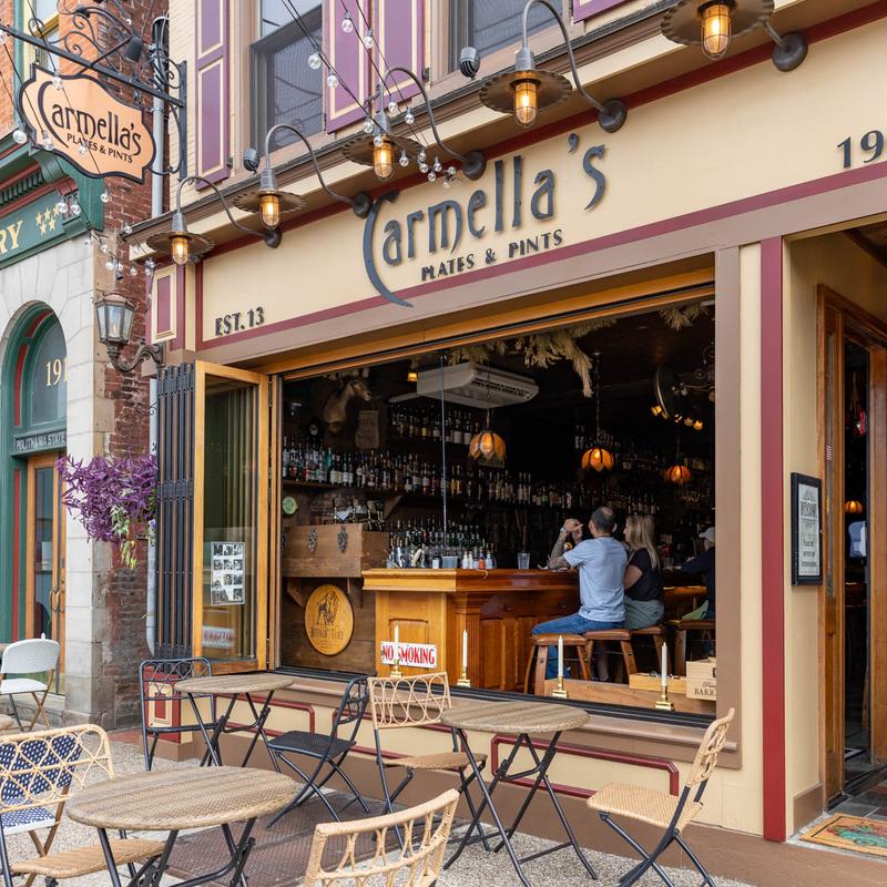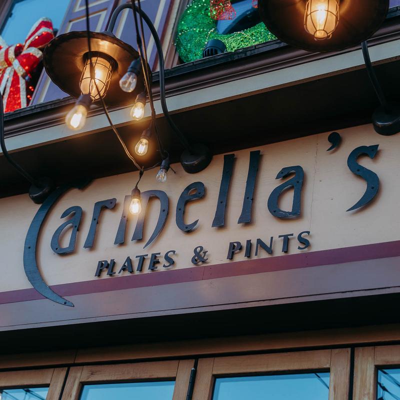 Carmella’s Plates & Pints co-owners, Carmella Salem and Michael Alberter celebrated a decade in the restaurant industry in fall 2023! The kitchen creates a variety of upscale comfort cuisine. The whiskey bar displays over 500 bourbons, scotches, and tequilas.