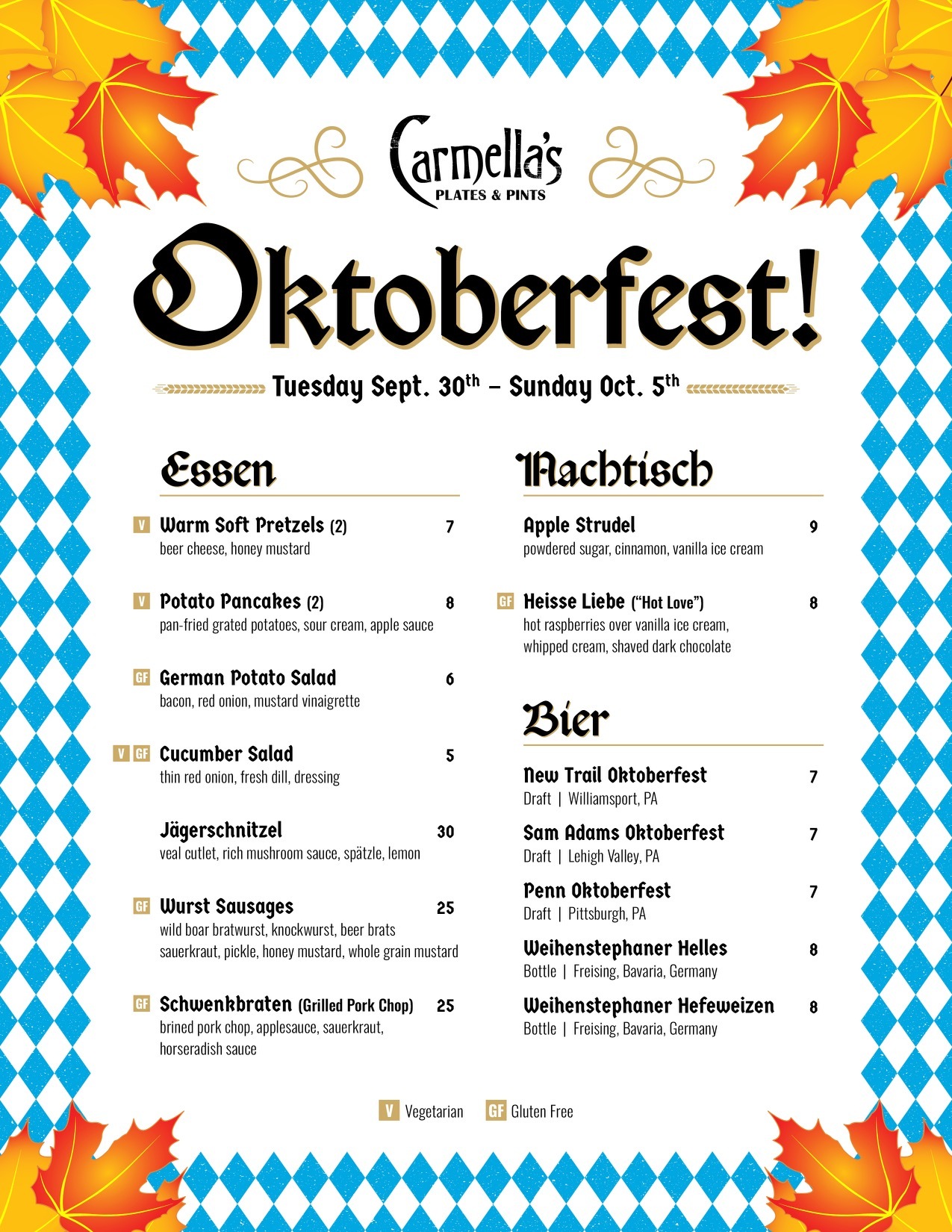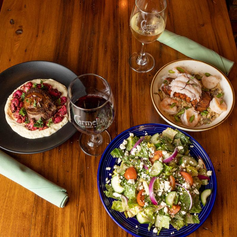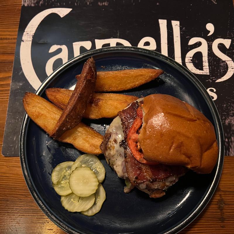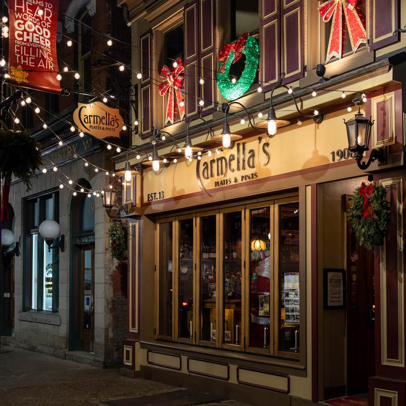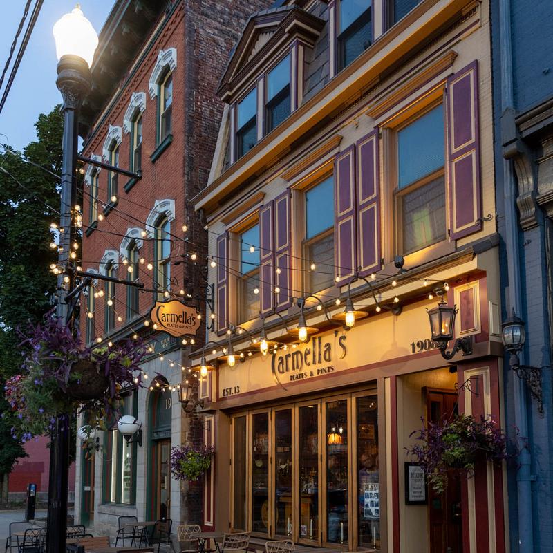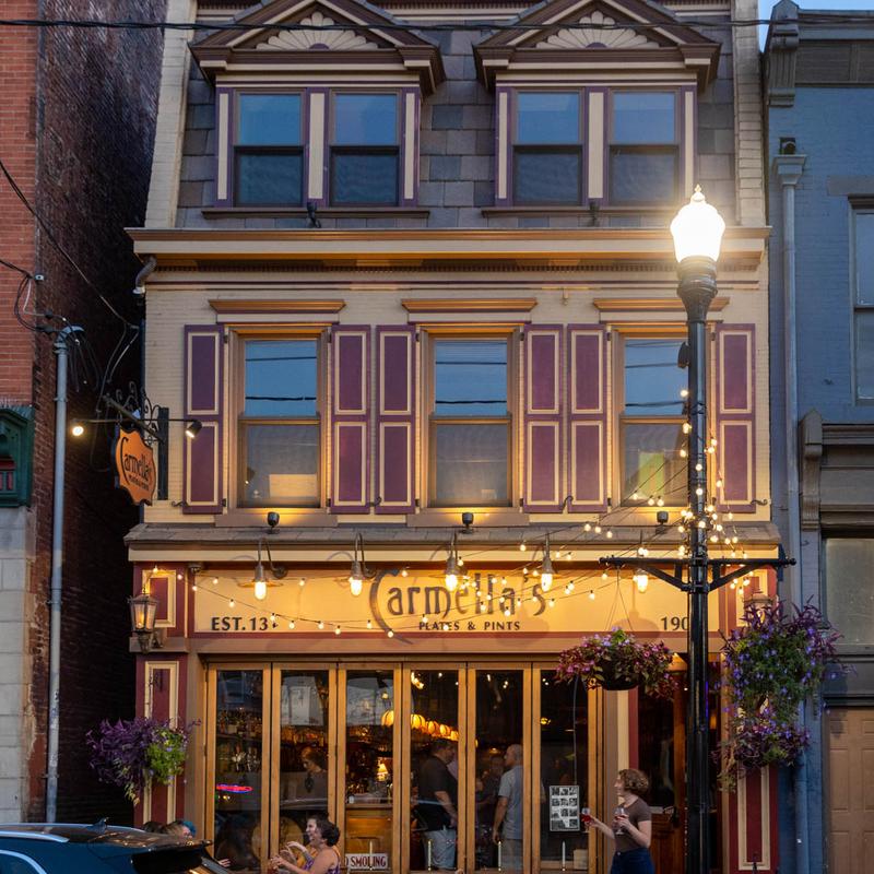 Carmella’s Plates & Pints co-owners, Carmella Salem and Michael Alberter celebrated a decade in the restaurant industry in fall 2023! The kitchen creates a variety of upscale comfort cuisine. The whiskey bar displays over 500 bourbons, scotches, and tequilas.