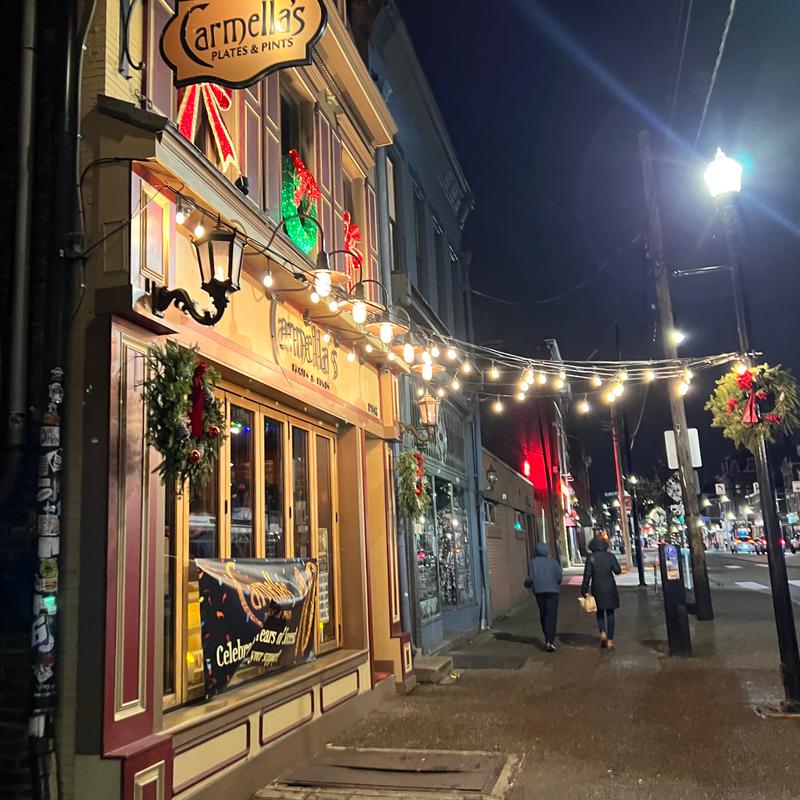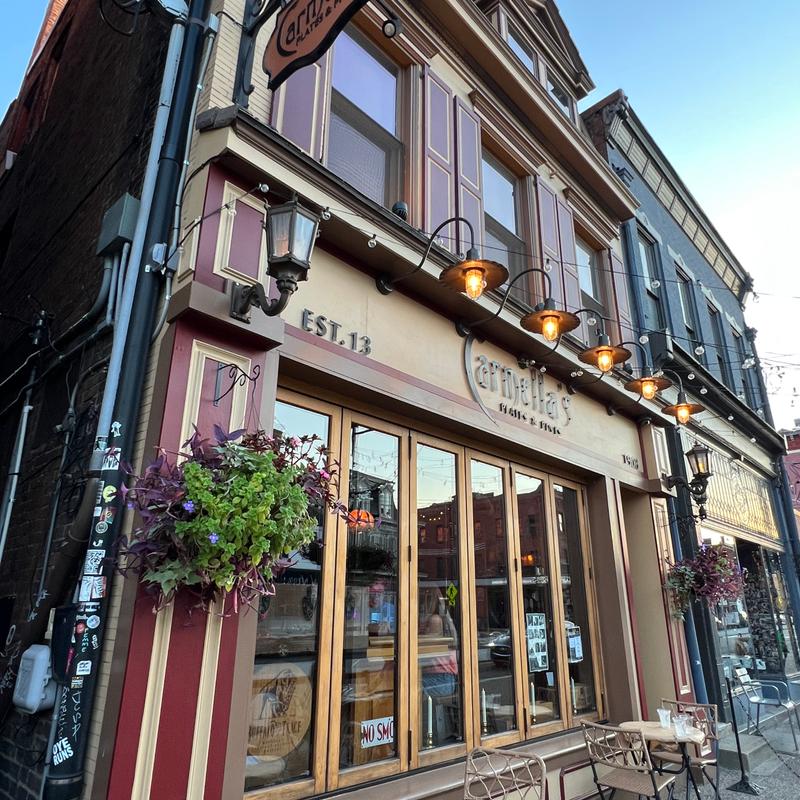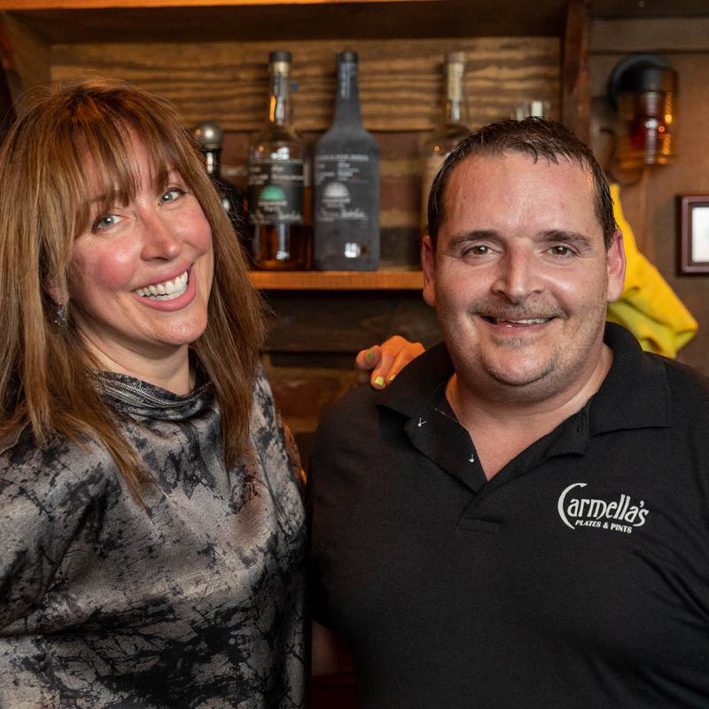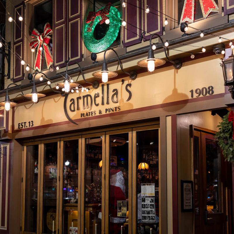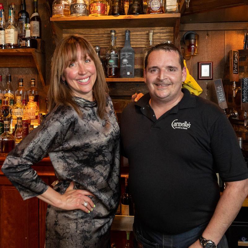Carmella’s Plates & Pints co-owners, Carmella Salem and Michael Alberter celebrated a decade in the restaurant industry in fall 2023! The kitchen creates a variety of upscale comfort cuisine. The whiskey bar displays over 500 bourbons, scotches, and tequilas.